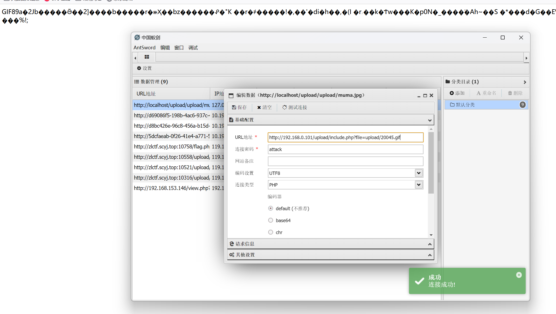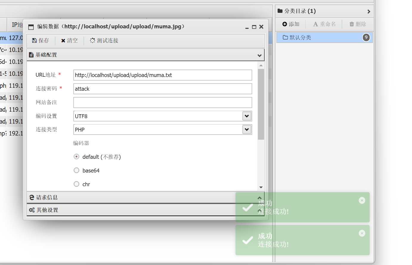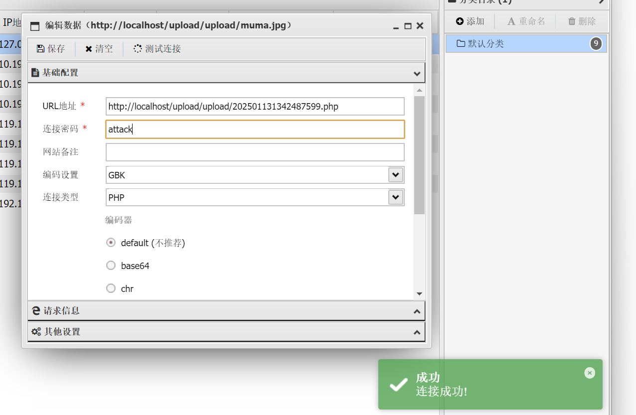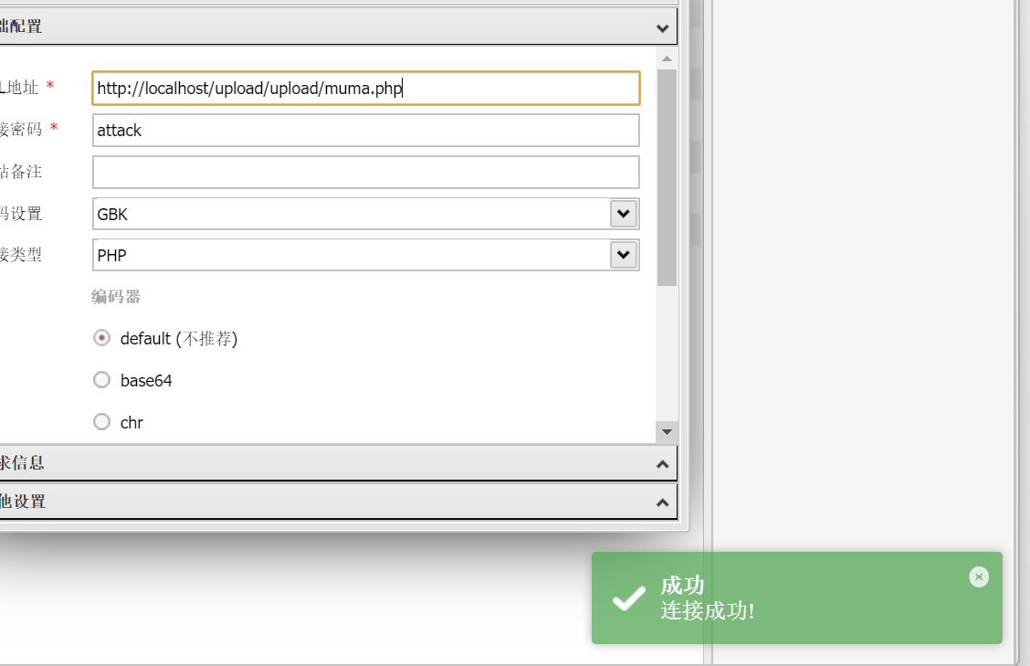 上传成功后使用木马进行连接