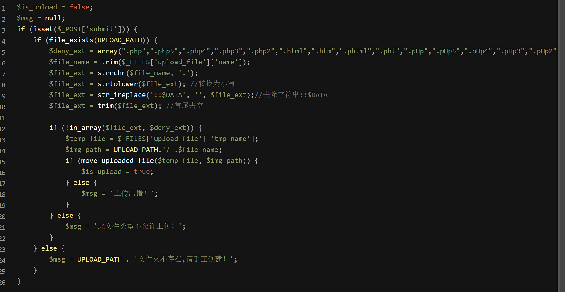 $file_ext = substr($file_name,strrpos($file_name,”.”)+1); // 获取上传文件的扩展名,即文件名的最后部分