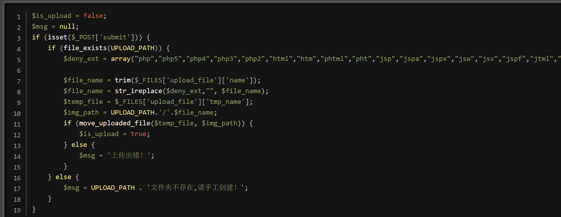 $msg = “只允许上传.jpg|.png|.gif类型文件!”;