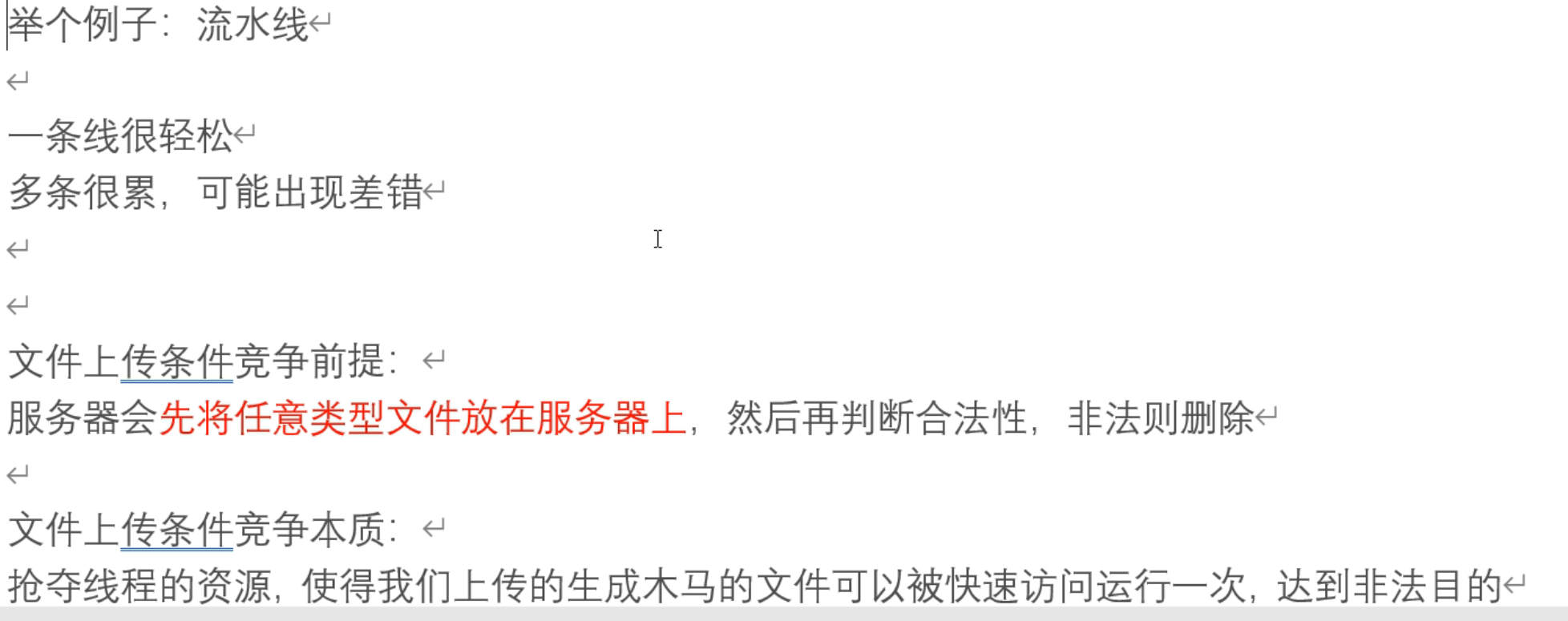 其实就是利用代码执行的逻辑问题来进行上传,如:当文件先上传后改名时就可以通过不断的发包从而访问到指定的文件